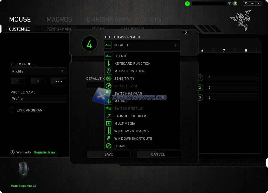 Passiamo dunque ad analizzare le impostazioni e voci che ci verranno messe a disposizione per la personalizzazione del mouse. Come saprete anche è un software unico per tutti i prodotti Razer da cui poter gestire in modo indipendente le singole periferiche. Bene procedendo troviamo i classici Menù.