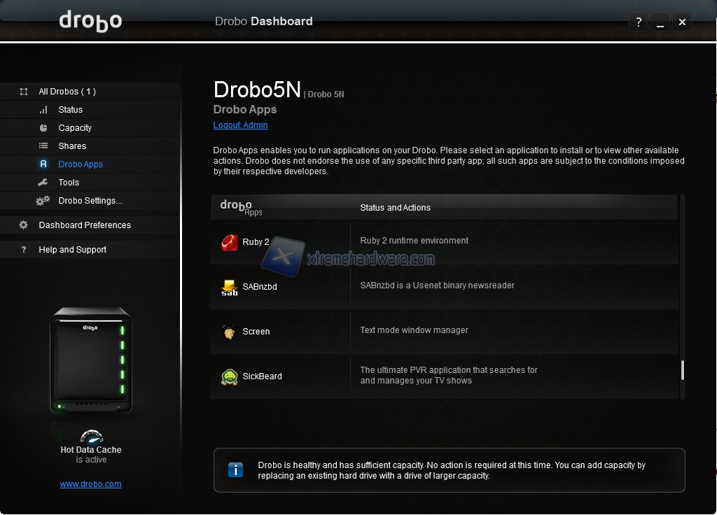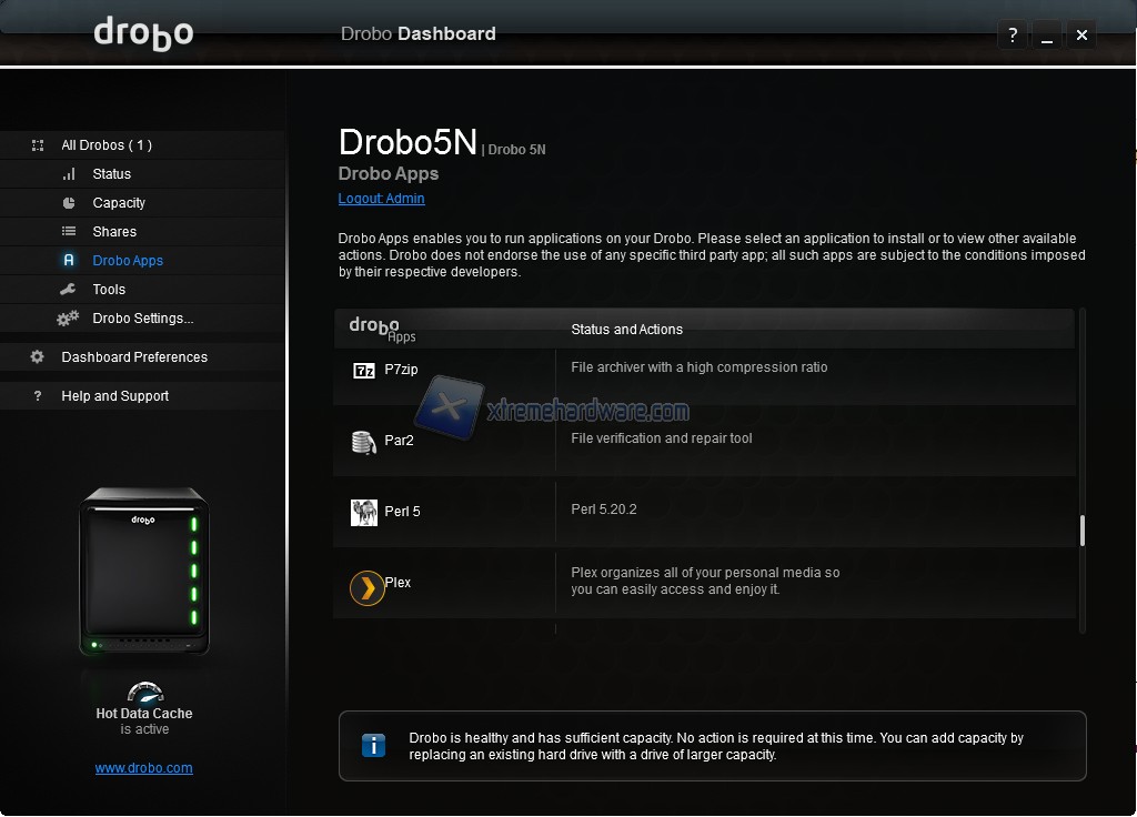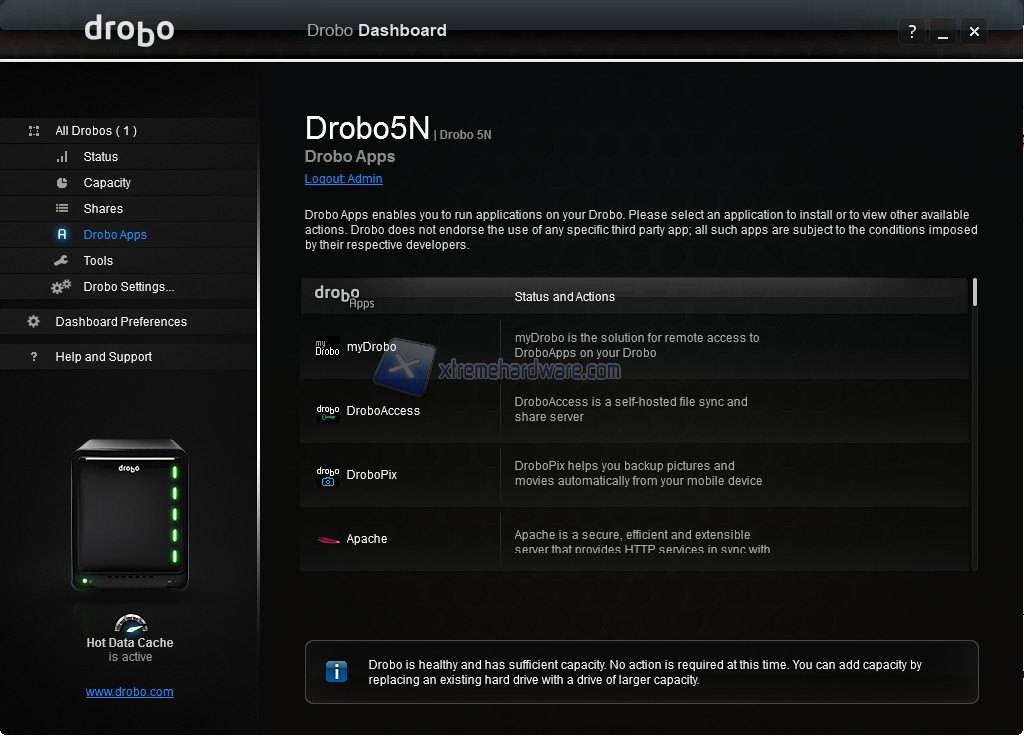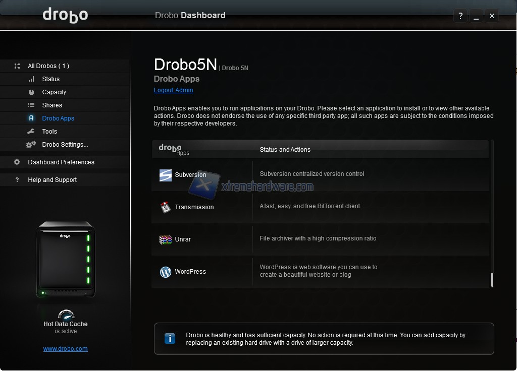 “Drobo Apps” racchiude una delle caratteristiche più importanti relative a questo software; la possibilità di installare numerosi utility ed applicazioni da utilizzare con questo prodotto, esattamente come avviene per Synology, QNAP o Asustor, ad esempio.
